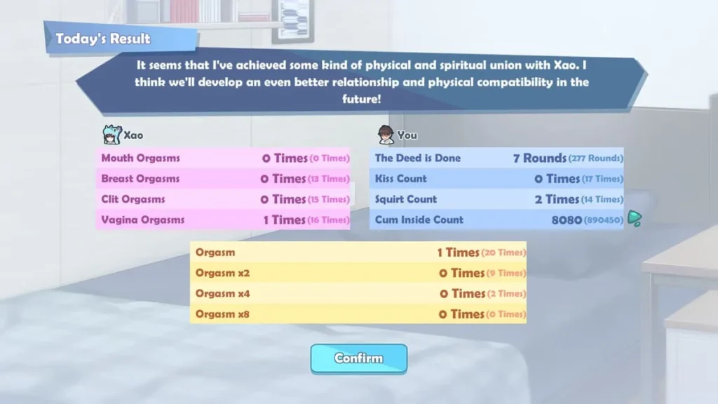 Second, and most importantly, is Xao herself. She has two primary needs: her Happiness Meter and her Hunger. Her mood fluctuates based on your interactions, the state of the apartment, and story events. A happy Xao is more cooperative and efficient. Feeding her is non-negotiable—it costs resources but is essential for maintaining her energy and, by extension, yours.